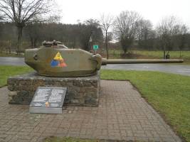 The 10th Armored Division plaque proudly stands along the road to the Mardasson Memorial northeast of Bastogne. The plaque was dedicated on Saturday, December 10th at 1:15 p.m. during the Nuts Festival that is celebrated in Bastogne every December.