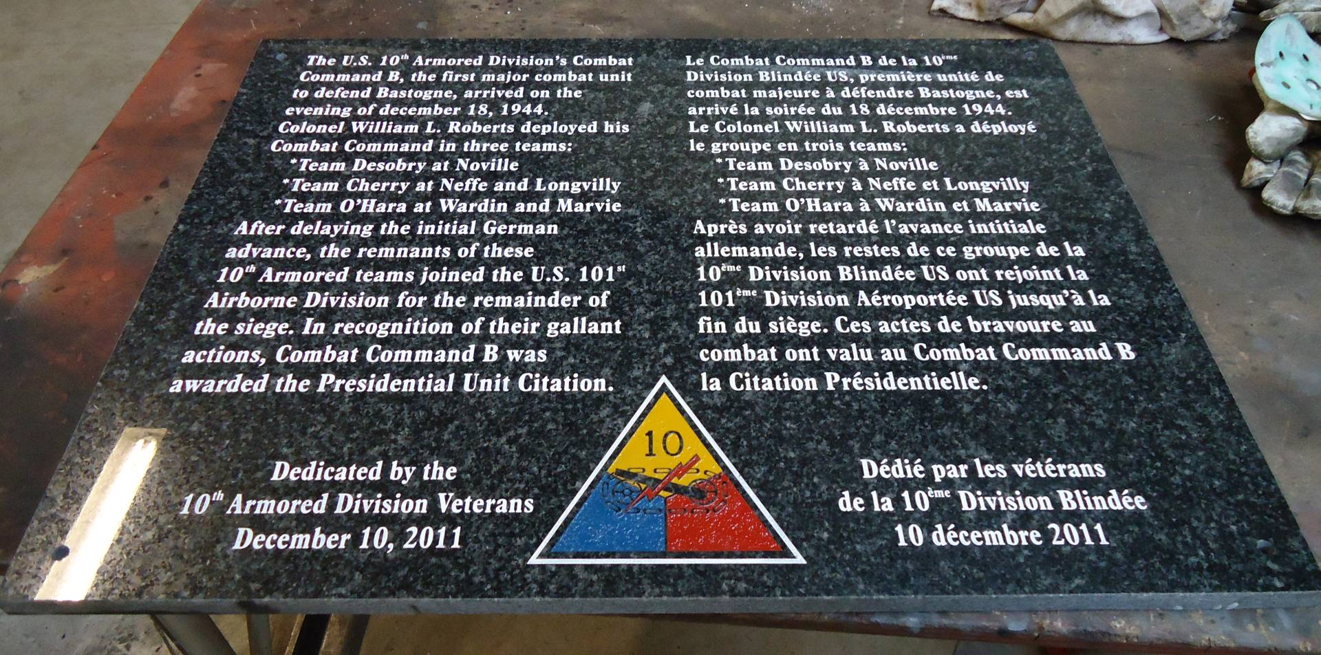 Photos of the 10th Armored Plaque (click each photo to view larger images)